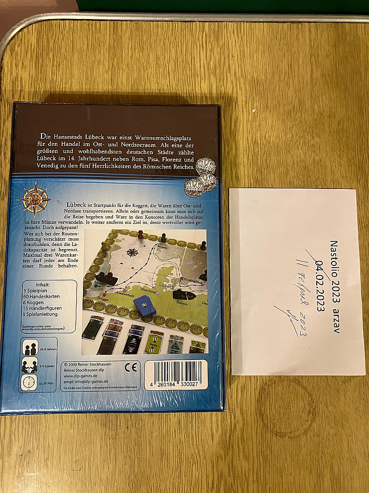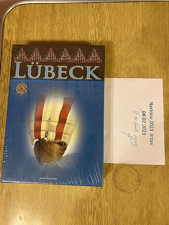 A family strategy game set in the Hanseatic city of the same name, Lübeck will have players sailing through the North and East Seas in order to trade goods. Each round players choose cards for the products to be delivered, then try to move to their destinations, confronting maximum hand sizes along the way, as well as pirates and the shifting currents of the sea.